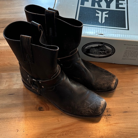 Frye Distressed Black Leather Smith Harness Men's Boots