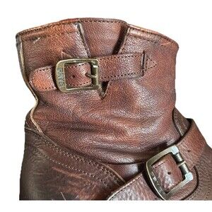 Frye Distressed Boots Men's Size 14 Brown Leather Shearling Interior Moto Biker