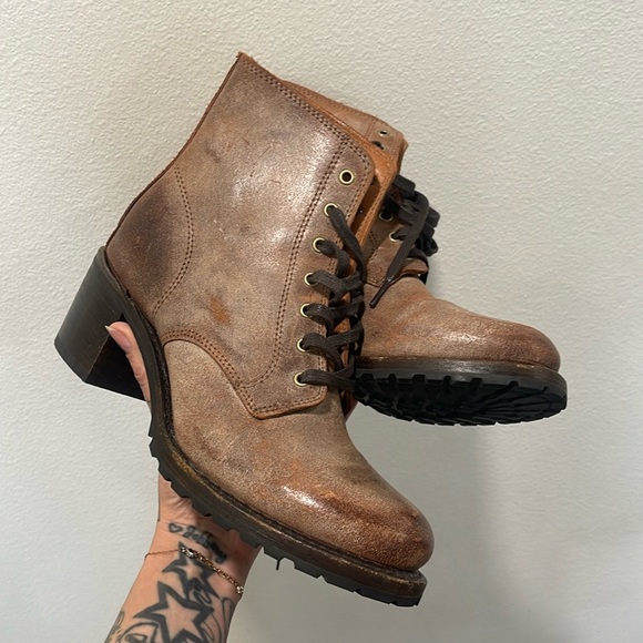 Selling these super cute Frye lace up boots in a tan/brown distressed color. These fit SMALL! I am a size 10, and these are a tad too small. Would be perfect for a size 9 or 9.5