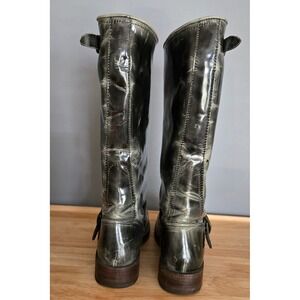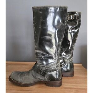 Frye Distressed Patent Leather Riding Boots Biker Knee High Buckles *READ DICS*