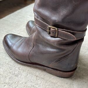 Made in Spain, Dorado brown leather tall riding boots by Frye.