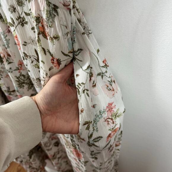 Frye Dress Dress 2XL Plus Size Cream Pink Floral Button Front Midi Botanical Spring Cottage
