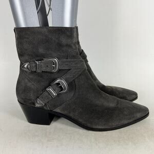 Frye Ellen Ankle Bootie Women 9 Grey Leather Block Heel Buckle Strap 3478027-GIO