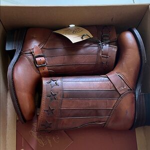 Elegant tan leather boots by Frye. Anniversary edition with classic design.
