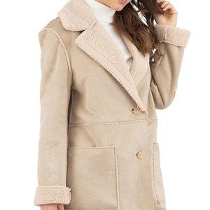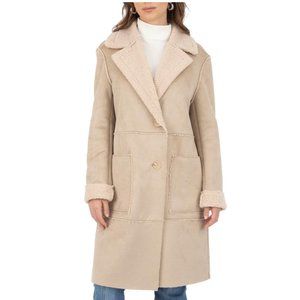 Frye Faux Suede/Faux Shearling/Sherpa Beige Long Warm Coat,Size Large New w/Tag