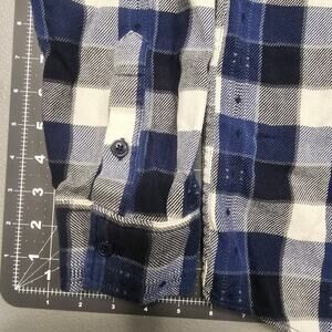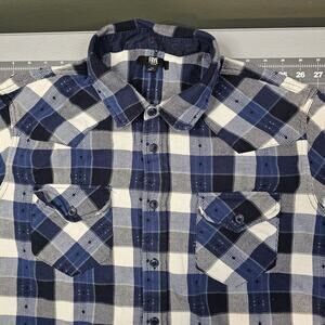 Frye blue plaid western flannel shirt men's XL. The shirt has a western yoke and pockets but it's a button-up, not a snap close. Excellent condition with no flaws or defects. 3486
