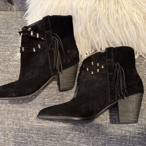Frye Fringe Suede Booties – Women’s Size 9.5M – Black – Boho Style Boots Fringe