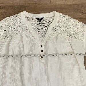 This Frye Gauze Off-White Top is a charming, lightweight piece with a breezy, relaxed feel. Crafted from soft gauze fabric, it's perfect for warmer days and layering. The off-white color gives it a versatile, timeless look, while intricate eyelet details add a touch of femininity and texture. The delicate design around the neckline and sleeves adds subtle elegance, making it easy to dress up or keep casual. Perfect for pairing with jeans, shorts, or a skirt for an effortlessly chic style!
