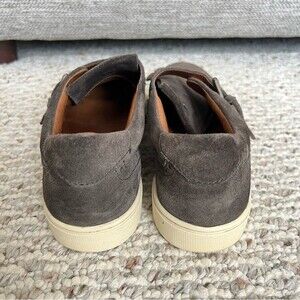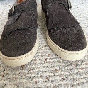 Soft gray nubuck suede leather wingtip oxford fashion sneakers with buckle and fringe! Sold out on their site!