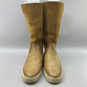 Frye Gemma Tall Shearling Boots Women Size 6.5 Brown Mid Calf 12" Comfort Shoes