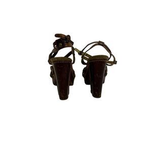 Frye Grace T-Strap Platform Sandals | Size 8M | Brown Leather High Heel