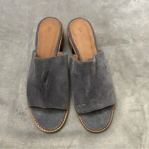 Frye Gray Suede Women's Open Toe Mule Heeled Slide Sandals Size 8.5M
