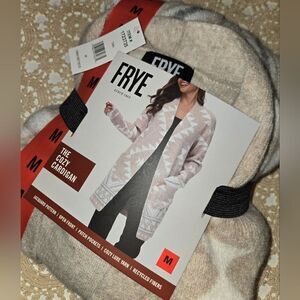 NWT Frye Cozy Cardigan Sweater Super Soft Oversize Open Front Tan Oatmeal White Cardigan