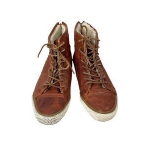 Frye Greene leather High Back Zip Sheepskin booties Sneakers Size 9.5