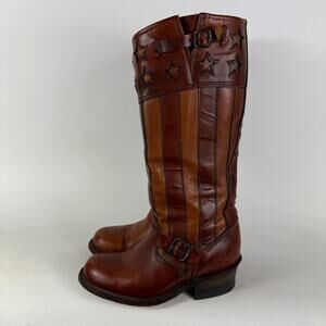 Frye Harness Americana Boots Women's 6 Brown Leather Stars & Strips Knee High