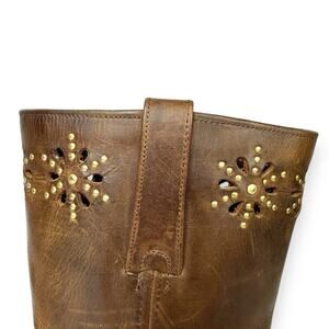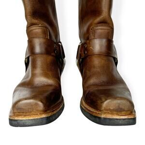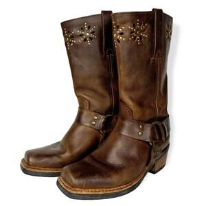 Frye Harness Boots Brown Leather Square Toe Biker Moto Boots Womens size 6