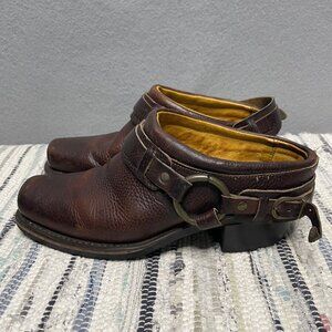 Frye Harness Mules Boots Womens 7.5 Brown Leather Made In USA Clogs 70760