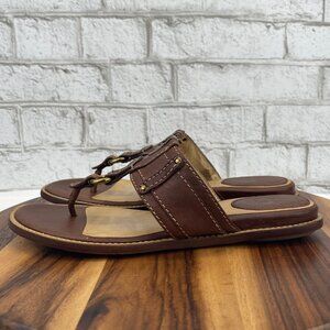 Frye Holly Thong Womens 11 M Brown Leather Slide Flat Thong Sandals 78010