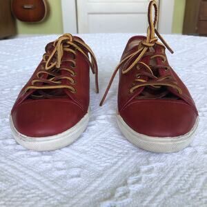 Keywords: Frye sneakers, Ivy Low Lace, red leather tennis shoes, women’s 7, low top court, lace up casual, heritage brand, comfy travel shoe, minimalist leather sneaker, street style, minimalist, quiet luxury
