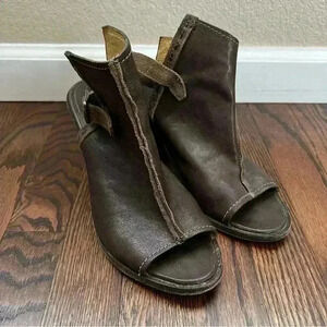 Frye Izzy Artisan Peep Toe Mule Booties Wm Sz 9 B Brown Leather Slingback Sandal. Preowned condition, worn on soles, heels, scuffing on leather throughout shoes, pictures provided