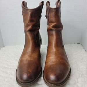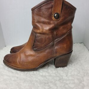 Frye Jackie Button Short Bootie Size 8.5 Womens Brown Leather Casual Dress Boots Good Comditionl See Pictures For More Details.