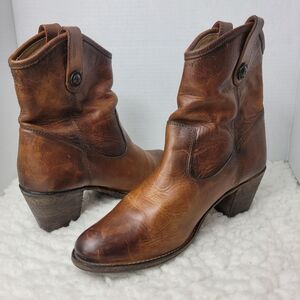 Frye Jackie Button Short Bootie Size 8.5 Womens Brown Leather Casual Dress Boots