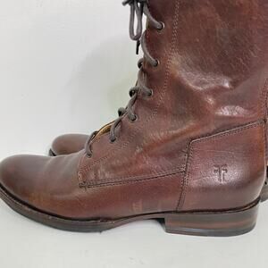 Frye Jamie Artisan Women's Size 8.5 Dark Brown Lace Up Back Zip Combat Boots