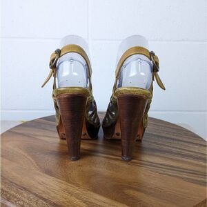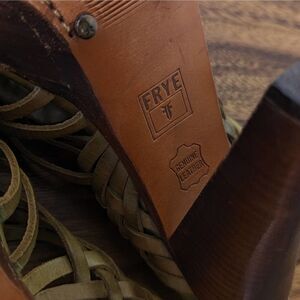 Frye Joy Huarache Platform Heels Olive Green Leather Size 7