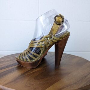 Frye Joy Huarache Platform Heels Olive Green Leather Size 7