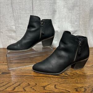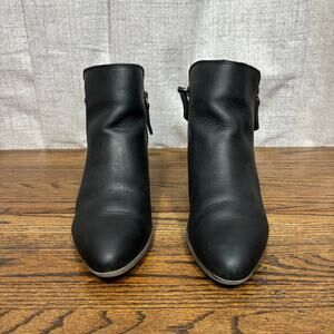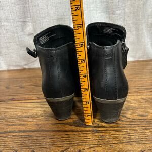 Frye Judith Double Zip Black Leather Ankle Boots Size 8M Stacked Heel Western