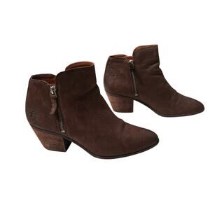 Frye Judith Double Zip Leather Booties Boots Women's Size 8.5 in Cognac