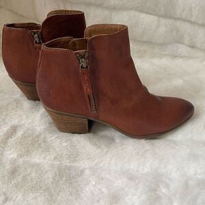 Frye Judith double zip ankle boots tan color pointed toe size 9.5