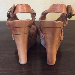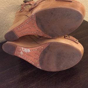 Frye June Slingback Natural Leather Studded, Wood Platform, the right shoe has a missing small piece on the inner sole on the heel area, pre-owned but in good condition. No trading. //No PayPal