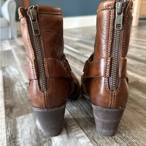 Frye Leather Harness Boots Tabitha Ankle Height Back Zip Size 7.5 Cognac Western