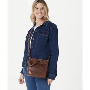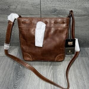 Frye Leather Melissa Drawstring Bucket Bag Cognac color B000498