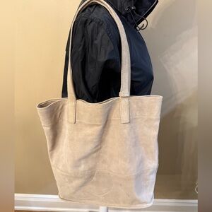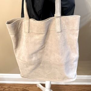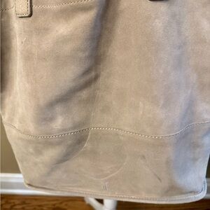 Frye Leather Suede Harvest Tote Shoulder Bag Light Gray with Pouch