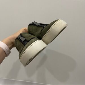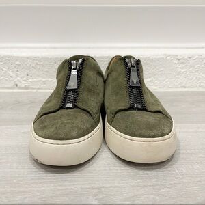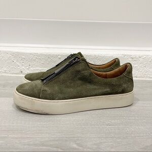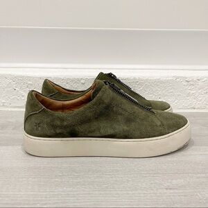 Frye Lena Slip-On Low Top Sneakers Green Suede Zip Front Platform Size 7