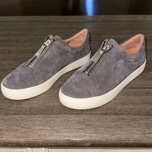 Elevate your casual style with these Frye Lena slip-on sneakers. Crafted from high-quality suede leather, these shoes feature a low platform and a slip-on design with a zip closure for easy wear. The leather lining and insole provide added comfort, while the arch support and cushioned features ensure all-day support.