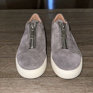 Frye Lena Zip Low Sneaker in “Jean” a dark blue-toned gray color