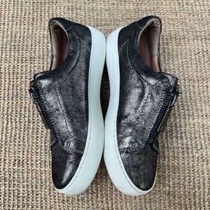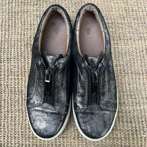 Frye Lena Zip Up Metallic Leather Zip Sneakers
