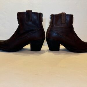 Frye Leslie Artisan Short Boots Booties Back Zip Brown Dark Heeled 7.5