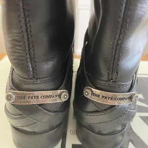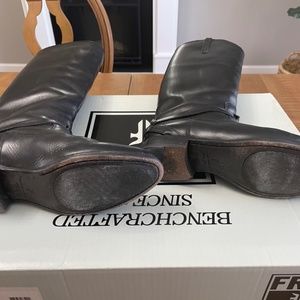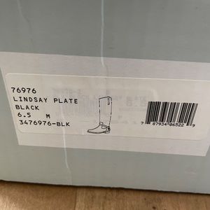 black pull on boots, size 6.5 pre owned , gently used like new condition , no visible damage , 1 inch heel, approx 15 in shaft height, box included.