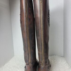 Frye Lindsay Womens Boots Size 8.5 Logo Embroidered Brown Riding Back Side Zip