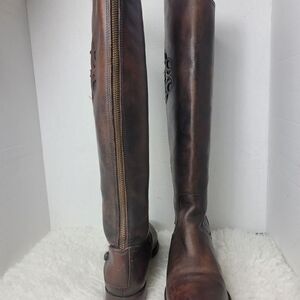 Frye Lindsay Womens Boots Size 8.5 Logo Embroidered Brown Riding Back Side Zip Good Condition See Pictures For More Details.