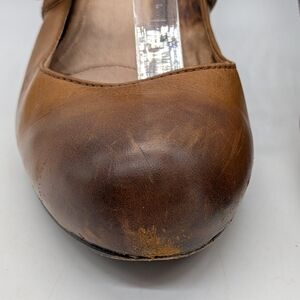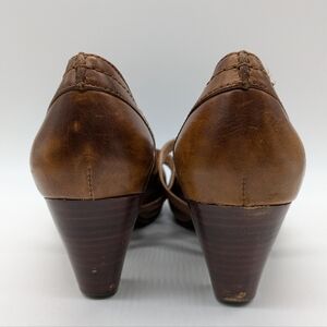 Frye Lois Brown Letter Block Heel 10. Scuffs, scratches, water marks, and marks on the inside, please see all photos for condition.