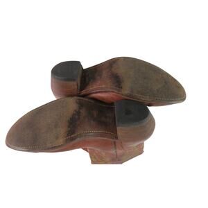 Classic Frye cowboy boots in brown leather, men’s size 10.5, ade in the USA. Likely from the 1990s–early 2000s era when Frye was still producing domestically, these boots feature traditional western stitching, pull-on tabs, and a stacked heel. . Pre-owned with visible wear and markings (see photos) that give them a rugged, broken-in patina; second cleaning recommended. Known for durability and craftsmanship, Frye’s USA-made boots are sought after for both collectors and daily wear. Perfect for rodeos, ranch work, or styling with denim and fringe at festivals like Stagecoach or Burning Man. Heritage leather that only gets better with time.