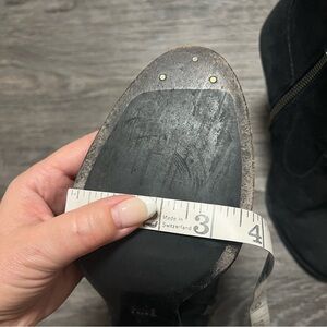 Frye Madeline Short Black Suede Leather Zip Up Southwestern Heeled Ankle Bootie, size 9