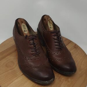 Frye Maggie Perf Oxford Wingtip Heeled Booties- Womens- Size 7-Brown-Leather