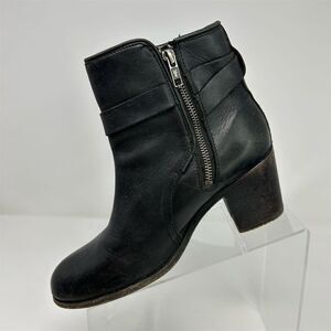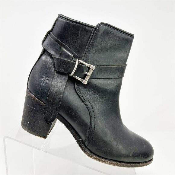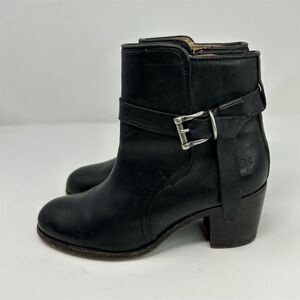 Frye Malorie Knotted Black Leather Booties Casual Block Heel Size 8 Buckle Fall
