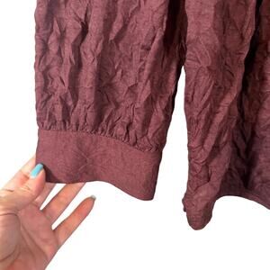 Frye Maroon Long Sleeve Collared Textured Peplum Button Down Blouse Women Sz XXL